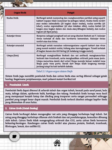 Tabel 2.1 Organ-organ sistem limfa