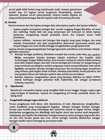 Lapisan dermis mengandung kelenjar keringat (grandula sudorifera) serta kelenjar minyak
