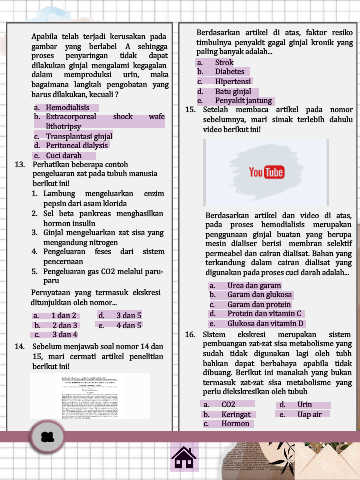 a. Hemodialisis 15. Setelah membaca artikel pada nomor