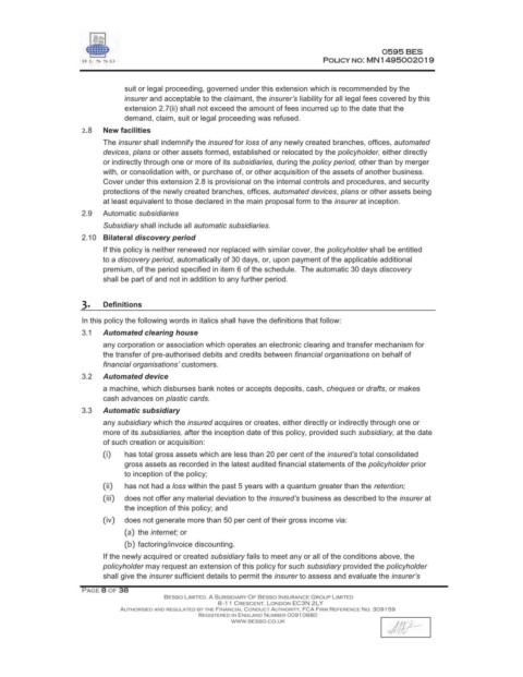 Cover under this extension 2.8 is provisional on the internal controls and procedures, and security in money to or to the order of a specified person, or to bearer.