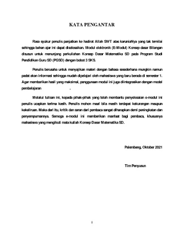 sehingga bahan ajar ini dapat diselesaikan. Modul elektronik (E-Modul) Konsep dasar Bilangan