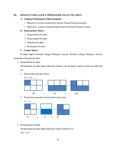 III. KEGIATAN BELAJAR 4: OPERASI BILANGAN PECAHAN