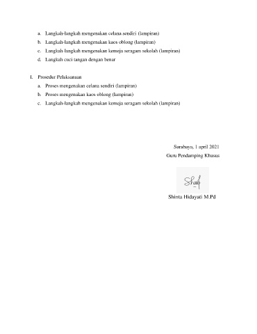 c. Langkah-langkah mengenakan kemeja seragam sekolah (lampiran)