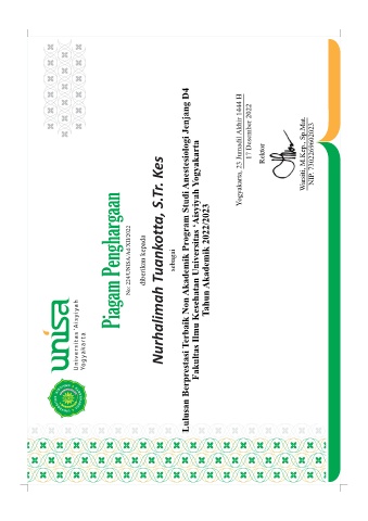 1R 81,6$ $G ;,, GLEHULNDQ NHSDGD EƵƌŚĂůŝŵĂŚ dƵĂŶŬŽƚƚĂ͕ ^͘dƌ͘ <ĞƐ VHEDJDL /XOXVDQ %HUSUHVWDVL 7HUEDLN 1RQ $NDGHPLN 3URJUDP 6WXGL $QHVWHVLRORJL -HQMDQJ ' )DNXOWDV ,OPX .HVHKDWDQ 8QLYHUVLWDV µ$LV\L\DK <RJ\DNDUWD 7DKXQ $NDGHPLN
