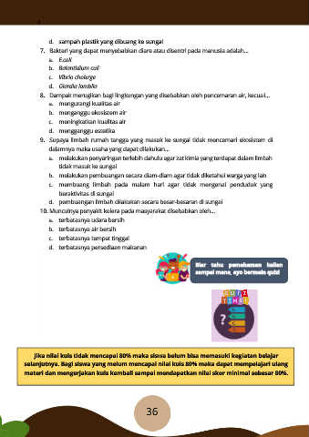 9. Supaya limbah rumah tangga yang masuk ke sungai tidak mencemari ekosistem di