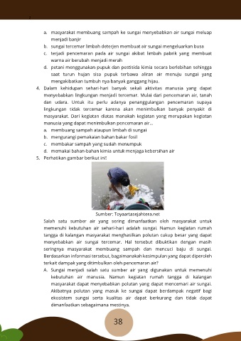 b. sungai tercemar limbah deterjen membuat air sungai mengeluarkan busa