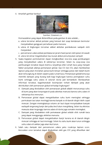b. udara di lingkungan tercemar akibat aktivitas pembakaran sampah oleh
