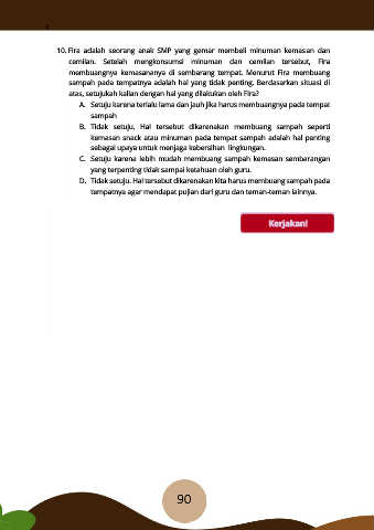 10. Fira adalah seorang anak SMP yang gemar membeli minuman kemasan dan