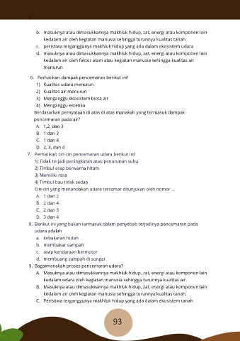 8. Berikut ini yang bukan termasuk dalam penyebab terjadinya pencemaran pada
