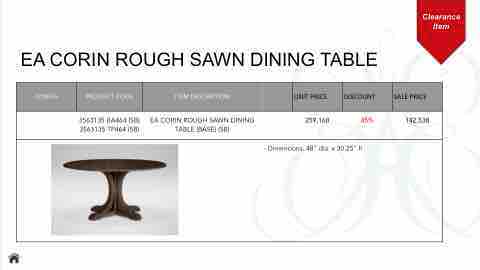 3563135 BA464 (SB) EA CORIN ROUGH SAWN DINING 259,160 45% 142,538 3563135 TP464 (SB) TABLE (BASE) (SB)