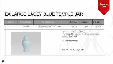 432091A EA LARGE LACEY BLUE TEMPLE JAR 43,320 40% 25,992