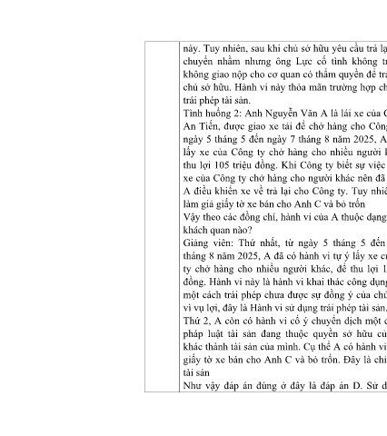 Vậy theo các đồng chí, hành vi của A thuộc dạng hành vi