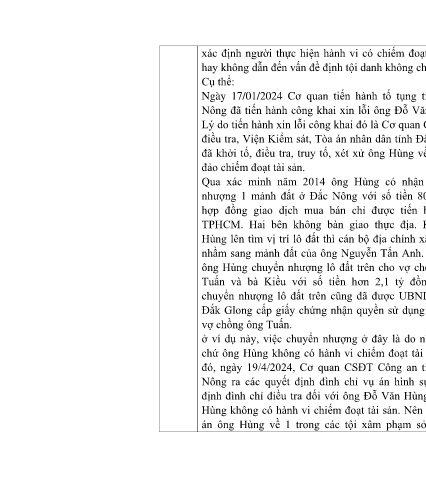 chứ ông Hùng không có hành vi chiếm đoạt tài sản. Do