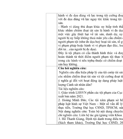 Nghiên cứu dấu hiệu pháp lý của tội cướp tài sản, tội bắt n ng gh hi iê ên n c cứ ứu u. .