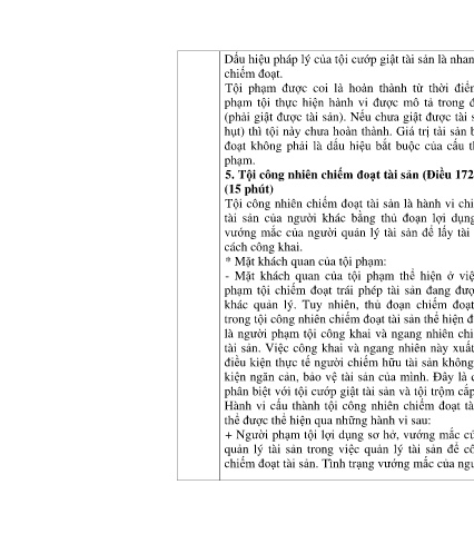 trong tội công nhiên chiếm đoạt tài sản thể hiện đặc trưng