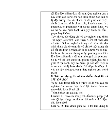 Về tội này trong tiết học trước tôi đã yêu cầu nhóm 2 về