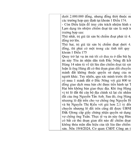 Thứ hai, trị giá tài sản bị chiếm đoạt dưới 4.000.000