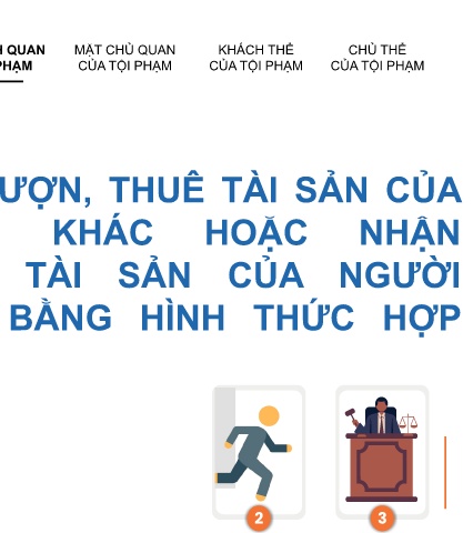 DẤU HIỆU PHÁP LÝ MẶT KHÁCH QUAN MẶT CHỦ QUAN CỦA TỘI PHẠM CỦA TỘI PHẠM KHÁCH THỂ CHỦ THỂ CỦA TỘI PHẠM CỦA TỘI PHẠM VAY, MƯỢN, THUÊ TÀI SẢN CỦA NGƯỜI KHÁC HOẶC NHẬN ĐƯỢC TÀI SẢN CỦA NGƯỜI KHÁC BẰNG HÌNH THỨC HỢP ĐỒNG 1 2 1 3