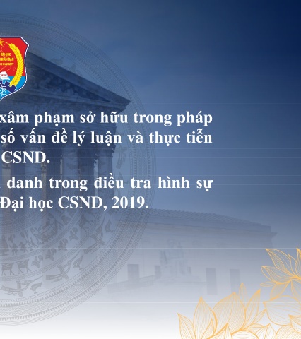 1. Hoàng Minh Đức, Các tội xâm phạm sở hữu trong pháp luật hình sự Việt Nam – Một số vấn đề lý luận và thực tiễn (Chuyên đề), Trường Đại học CSND. 2. Hồ Thanh Giang, Định tội danh trong điều tra hình sự (Sách chuyên khảo), Trường Đại học CSND, 2019.