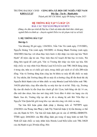 HỆ THỐNG BÀI TẬP VÀ ĐÁP ÁN
