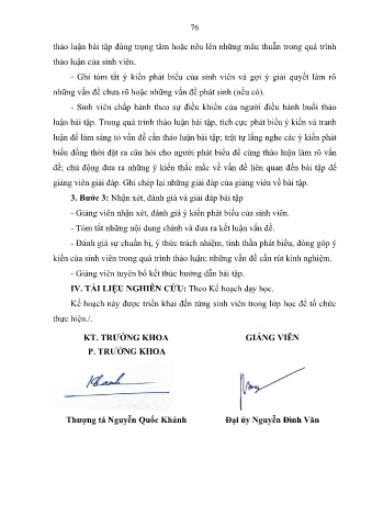 kiến của sinh viên trong quá trình thảo luận; những vấn đề cần rút kinh nghiệm.