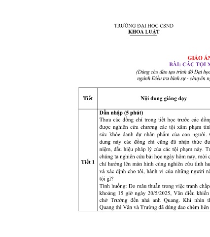 được nghiên cứu chương các tội xâm phạm tính mạng, đ đư ượ ợc c h họ ọc c ở ở t ti iế ết t người, cướp