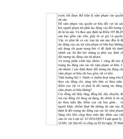 Tình huống thứ 1: Hành vi chiếm đoạt súng tiểu liên. Vậy xu-