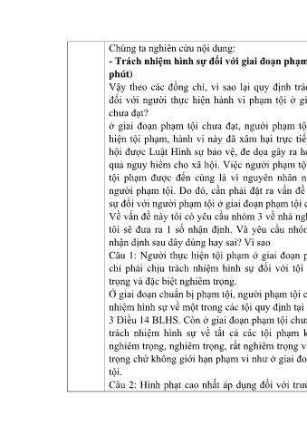 - Trách nhiệm hình sự đối với giai đoạn phạm tội chưa đạt (10 t tr rì ìn nh h. .