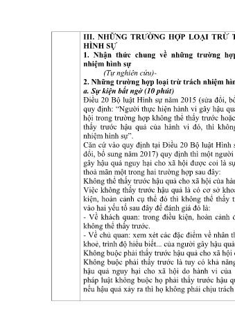 III. NHỮNG TRƯỜNG HỢP LOẠI TRỪ TRÁCH NHIỆM nội dung sau: d dụ ụn ng g t tì ìn nh h loại trừ
