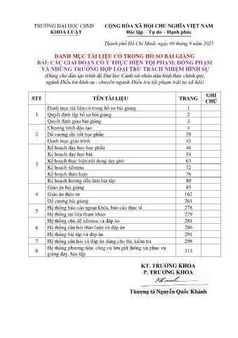 DANH MỤC TÀI LIỆU CÓ TRONG HỒ SƠ BÀI GIẢNG