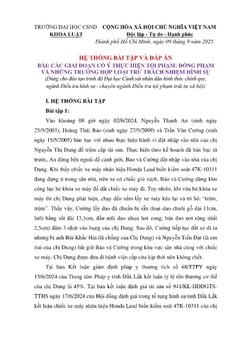 BÀI: CÁC GIAI ĐOẠN CỐ Ý THỰC HIỆN TỘI PHẠM; ĐỒNG PHẠM
