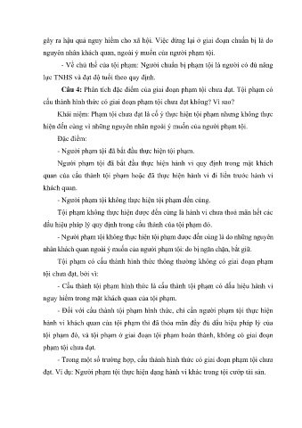 Câu 4: Phân tích đặc điểm của giai đoạn phạm tội chưa đạt. Tội phạm có