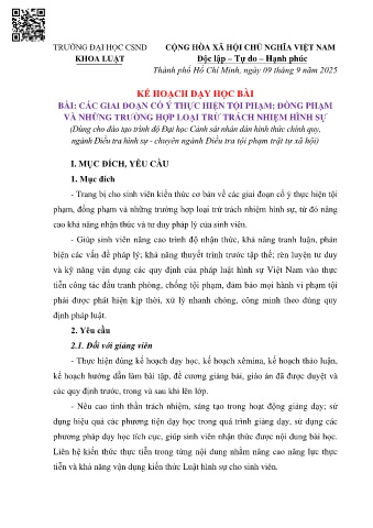 - Trang bị cho sinh viên kiến thức cơ bản về các giai đoạn cố ý thực hiện tội