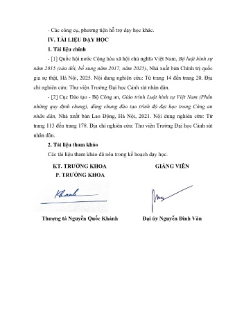 - [2] Cục Đào tạo - Bộ Công an, Giáo trình Luật hình sự Việt Nam (Phần