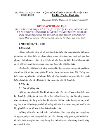 - Giảng viên chuẩn bị đầy đủ nội dung, yêu cầu của kế hoạch thảo luận; câu