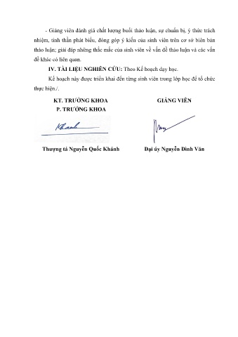 - Giảng viên đánh giá chất lượng buổi thảo luận, sự chuẩn bị, ý thức trách