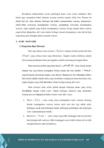 a. Waris ( ثراو ) yaitu orang yang mendapatkan harta warisan. Seorang