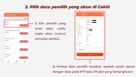 2. Pilih data pemilih yang akan di Coklit 1) Klik pemilih yang anda akan coklit, maka akan muncul tampilan berikut. 2) Periksa data pemilih tersebut, apakah sudah sesuai dengan data pada KTP atau KK dari yang bersangkutan