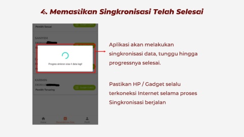 4. Memastikan Singkronisasi Telah Selesai Aplikasi akan melakukan singkronisasi data, tunggu hingga progressnya selesai. Pastikan HP / Gadget selalu terkoneksi Internet selama proses Singkronisasi berjalan