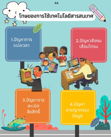 44 โทษของการใช้เทคโนโลยีสารสนเทศ 1.ปญหาการ 2.ปญหาสงคม ั ั ั แบ่งเวลา เส่อมโทรม ื ั 3.ปญหาการ ั ละเมิด 4.ปญหา ิ ลิขสทธ์ ิ อาชญากรรม ข้อมูล 55