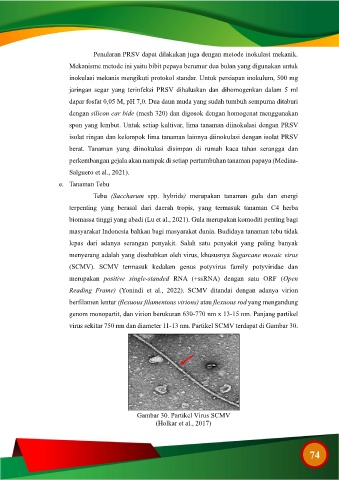 virus sekitar 750 nm dan diameter 11-13 nm. Partikel SCMV terdapat di Gambar 30.