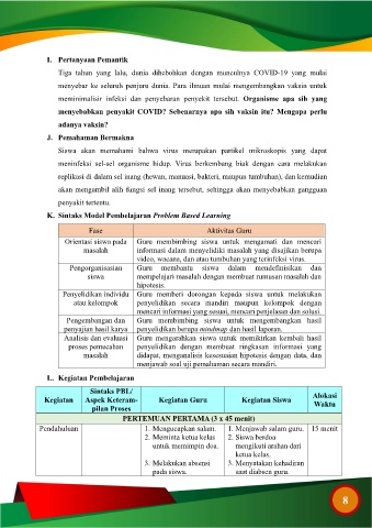 K. Sintaks Model Pembelajaran Problem Based Learning