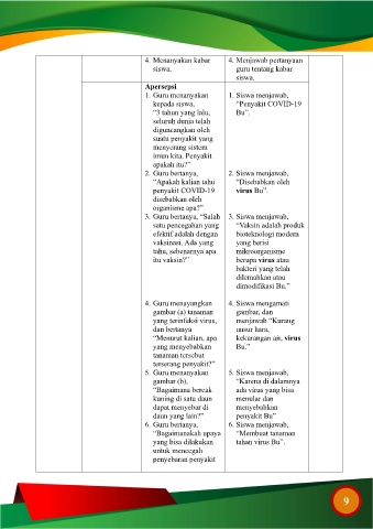 4. Menanyakan kabar 4. Menjawab pertanyaan