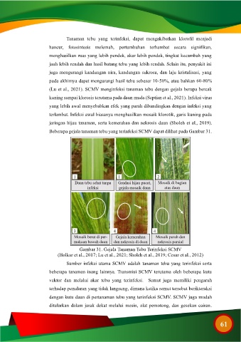 Beberapa gejala tanaman tebu yang terinfeksi SCMV dapat dilihat pada Gambar 31.