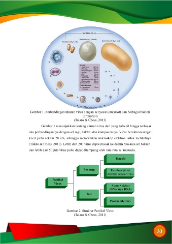 dan perbandingannya dengan sel ragi, bakteri dan komponennya. Virus berukuran sangat
