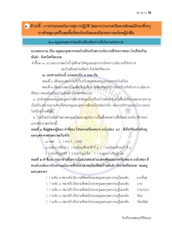 ตอนที่ 1 เป็นแบบสอบถามที่เกี่ยวกับสภาพของครูและบุคลากรโรงเรียน