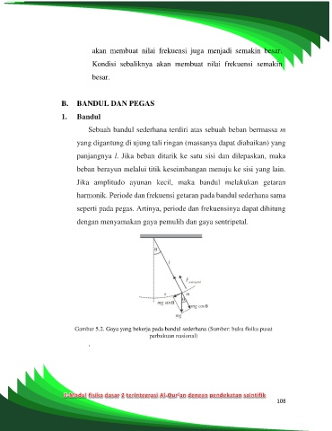 Gambar 5.2. Gaya yang bekerja pada bandul sederhana (Sumber: buku fisika pusat