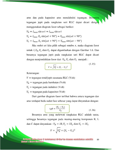 arus dan pada kapasitor arus mendahului tegangan. Besarnya