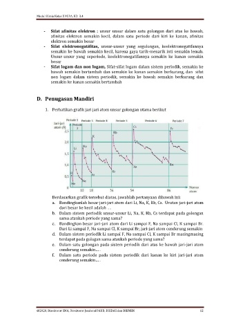 1. Perhatikan grafik jari jari atom unsur golongan utama berikut