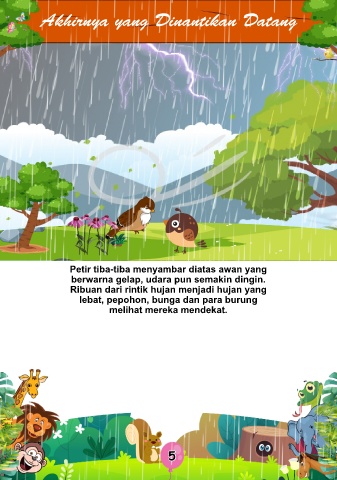 Akhirnya yang Dinantikan Datang Petir tiba-tiba menyambar diatas awan yang berwarna gelap, udara pun semakin dingin. Ribuan dari rintik hujan menjadi hujan yang lebat, pepohon, bunga dan para burung melihat mereka mendekat. 5